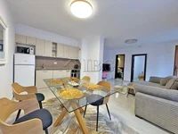 Квартира имеет общую площадь 80 кв.м. и имеет удобную планировку, включая гостиную с кухней и столовой, одну спальню, ванную комнату и террасу.