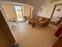 IBG Недвижимость рада предложить эту полностью меблированную однокомнатную квартиру, расположенную на шестом (верхнем) этаже в Stella Polaris 1, в тихой южной части Солнечного Берега.