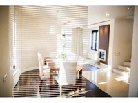 На первом уровне находится просторная гостиная с камином и прямым выходом в сад, полностью оборудованная мини-кухня, кладовая, гостевой туалет, гараж на две машины.