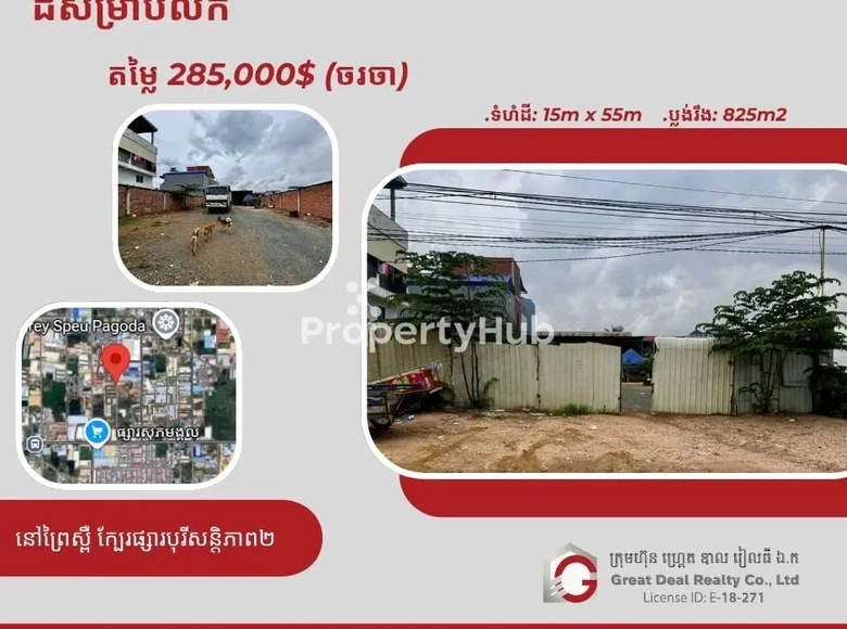 Земельные участки 825 м² Sangkat Chaom Chau 2, Камбоджа