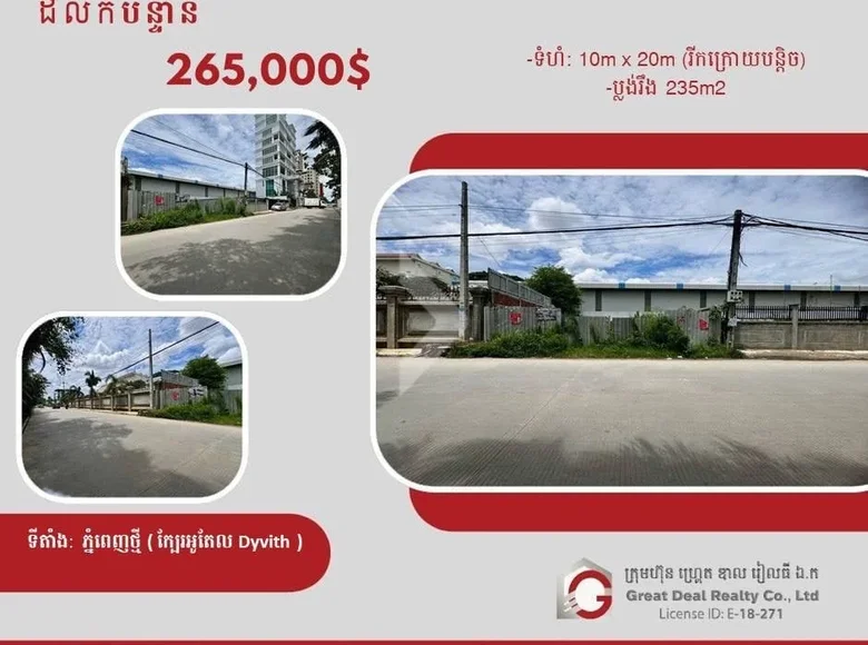 Земельные участки 235 м² Sangkat Phnom Penh Thmei, Камбоджа