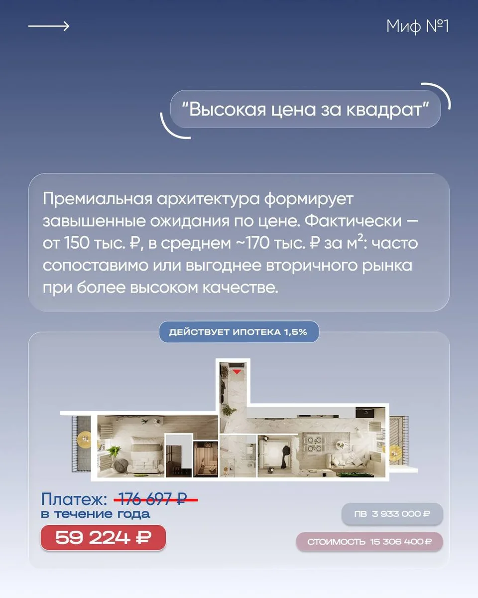 Миф №1: «Высокая цена за квадрат»