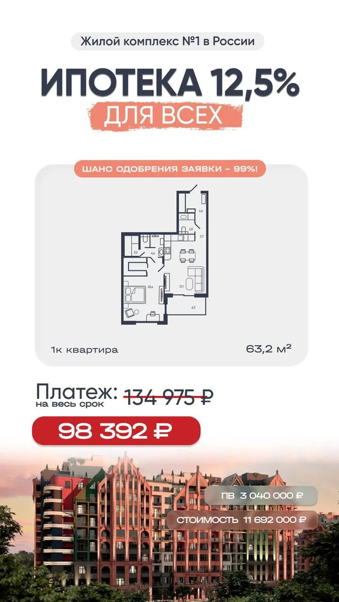 Успей купить на выгодных условиях! Ипотека при покупке в ЖК "Русская Европа" 1,5%, 8% и 12,5%