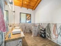 Недвижимость может похвастаться недавно построенным, хорошо спроектированным домом с 4 спальнями, элегантными потолками из тика и просторной верандой, с которой открывается потрясающий вид на океан. Он граничит с круглогодичным ручьем, который обеспечивает водой недвижимость и близлежащую общину Эль Сокорро. Благодаря насосам и большому резервуару для воды обеспечивается постоянное и обильное водоснабжение. Электричество подается через общественную сеть, а также доступен высокоскоростной, надежный беспроводной интернет.