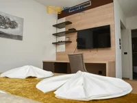 отель с рестораном и кафе-баром! На первом этаже отеля расположены ресторан и кафе с просторными открытыми и закрытыми террасами, что делает их идеальным местом для отдыха. Отель оборудован лифтом и пандусом для инвалидов, обеспечивающим доступ для всех гостей. Помимо рецепции, в отеле имеется офис, прачечная, гладильная комната, санузел для персонала, инвалидов и гостей, а также все необходимые сопутствующие помещения. Весь интерьер и мебель изготавливаются на заказ, что обеспечивает роскошный отдых. На территории отеля имеется помещение для дискотеки, которое продается как отдельно, так и внутри отеля. Этот отель с 14 парковочными местами представляет собой исключительную инвестицию.