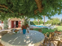 В благоустроенном дворе есть двор с бассейном и солярием, летняя кухня и парковка на 6 парковочных мест.