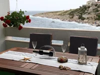 Одна из квартир имеет выход на просторную террасу с садовой мебелью, с которой открывается чудесный открытый вид на море.