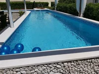 Перед виллой расположен красивый бассейн с зоной для загара, джакузи и зоной для барбекю.