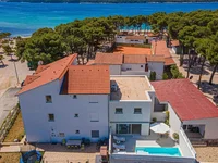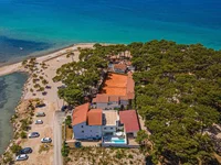 Абсолютно уникальная туристическая недвижимость на 1-й линии моря у пляжа в районе Шибеника, с просторной теннисной площадкой!