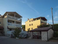 На втором этаже расположена большая квартира с 3 спальнями + ванная комната, салон и кухня с большой террасой, с которой открывается вид на Адриатическое море.