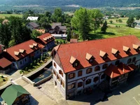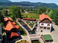 В самом сердце природы расположен прекрасный отель традиционного стиля, состоящий из нескольких зданий. Общая площадь земельных участков составляет 580 čhv (приблизительно 2 085 м²), а полезная площадь всех построек — 1673 м².