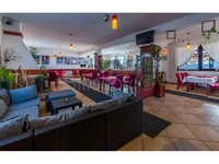 Комплекс включает ресторан на 100 посадочных мест, идеально подходящий для различных мероприятий. Рядом находится большая парковка на несколько десятков автомобилей, а также гараж, склад и помещение для снегоуплотнительной машины.