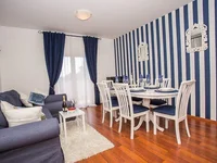 Наслаждайтесь полностью меблированным домом, готовым к аренде, с 5 роскошными квартирами на продажу в Криквенице, Хорватия, всего в 200 метрах от сверкающего Адриатического моря и недалеко от центра города.