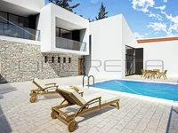 Land with a project for a luxury villa of modern design, first sea line, Starigrad Paklenica, 450m2 A plot of land measuring 1379m2 is located in the first sea line. On the land, there is a project for a villa that is expected to begin construction at the end of 2024. The villa consists of: four bedrooms with four bathrooms, two toilets, storage rooms, kitchen with dining area, laundry room, living room, pool, gym, technical room, and garage with 4 parking spaces. All bedrooms have sea views, as each bedroom has its own balcony. Also, the living room has access to a large terrace, on which there is a 25m2 pool. In the room where the gym is located, there is also a sauna with a bathroom. An elevator is also present, as the garage is dug into the basement, the elevator is located in the garage as well as the technical room. The modern and extraordinary design of this villa is breathtaking. The villa is built cascadingly, so the arrangement of the villa is as follows: Basement – garage with 4 parking spaces, elevator, and technical room.Basement – gym with sauna and bathroomGround floor – living room with kitchen and dining area, two toilets, bedroom with bathroom, laundry room, storage room, access to the north terrace, poolFirst floor – four bedrooms with four bathroomsSketches and sections of the villa available upon request.There is great tourist potential as well as residential potential. The distance of the villa to the sea is 50m, the distance to the center of Starigrad and the Paklenica National Park is 5km, the distance to the city of Zadar is 45 minutes by car. High-quality materials will be used during construction, the planned start of construction is the end of 2024. The planned completion of construction is the end of 2025.Starigrad is located in the extreme northwest of the Zadar region and geographically belongs to northern Dalmatia. The settlements of the municipality stretch along twenty kilometers of the Adriatic coast and are dominated by the Velebit mountain range, whose southern slopes host the Paklenica National Park. This area is entirely in a protected natural environment, as the Velebit, together with its coast, has had the status of a nature park since 1981. I27497 Šiljezetarica 46