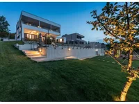 В задней части дома есть еще одна большая терраса, где можно расслабиться и насладиться красивым пейзажем или утренним солнцем. На террасу завезли полную установку для запланированной установки сауны и кондиционера для спортзала и/или игровой комнаты. В ванных комнатах есть душевая кабина со стеклянной стеной и стенной нишей, а также дизайнерская раковина, встроенная в тумбу, изготовленную на заказ. В каждой ванной комнате установлен настенный радиатор.