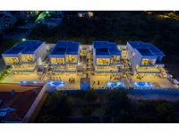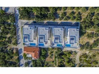 На первом этаже виллы также находится вторая, столь же большая и хорошо оформленная гостиная с кухней, выходящей на террасу с прекрасным видом на море и острова, и ванная комната с душевой кабиной.