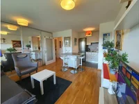 Квартира выходит окнами на юг и полна света, а в солнечные дни затраты на отопление минимальны. Встроенные шкафы (2 шт.) в прихожей и комнате, встроенная кухня и мебель по желанию покупателя могут остаться в квартире. Вложено ок. 20 000 евро на все, что сделано на заказ, и бытовую технику. В квартире сделан ремонт в 2019 году.