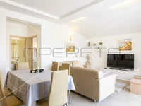 In the bay of Soline, in the municipality of Dobrinj, there is an apartment with a total net usable area of 76.59 m2. It is located in the attic of a two-story building built in 2011. The apartment consists of a kitchen and a living room with direct access to a covered terrace of 7.19 m2, two bedrooms, and two bathrooms equipped with a toilet, sink, shower cabin, and washing machine. Renovation carried out in 2023 includes new furniture, wall refreshment, and a new electric awning on the terrace. The windows are PVC, and the terrace exit is equipped with aluminum doors and electric blinds with remote control. Installations and the roof are in excellent condition. The apartment comes with one parking space spacious enough for two larger vehicles. The parking lot is fenced with remote access, and the building has a total of 6 apartments with the same number of parking spaces. All utilities (water, electricity, gas, sewage) are connected to the public network. Heating is provided by underfloor heating and three inverter air conditioners. The property’s special feature is its location in the first row to the sea with a café/restaurant just 10 meters away.