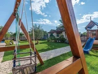 Вилла охраняется сигнализацией и видеонаблюдением. На огороженном участке есть сад с бассейном с солнечной террасой и детской площадкой и батутом.
