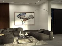 На первом этаже жилая площадь 81,01 м2; гостиная, кухня со столовой, кладовая и гостевой туалет. Гостиная и столовая выходят на крытые террасы, за которыми следует бассейн.
