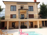 Все помещения вымощены камнем - коренным каставом серого цвета. Перед домом на террасе, рядом с солярием, расположен инфинити-бассейн с прекрасным видом на море.