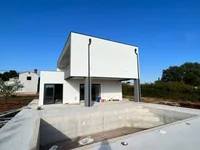 На первом этаже есть прихожая, кухня со столовой и просторная гостиная, помещение для стиральной машины и санузел. Гостиная ведет к большой крытой террасе, зоне для принятия солнечных ванн и бассейну 8x4 м, которым можно наслаждаться в течение всего дня. Внутренняя лестница соединяет первый этаж с первым этажом дома, где есть три спальни, каждая со своей ванной комнатой. Две спальни из трех имеют прямой выход на большую террасу 32м2 с панорамным видом и кладовую. Кроме того, в гостиной есть дымоход для твердого топлива, что дает новым владельцам возможность установить дровяную печь или печь на пеллетах.