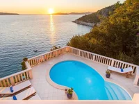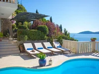 Продается потрясающая каменная вилла с бассейном, занимающая три уровня, расположенная в первом ряду у моря, с потрясающим видом на море со всех террас и всех комнат.