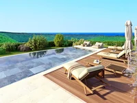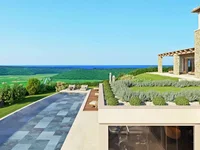 Большие стеклянные стены обеспечивают обилие естественного света в вилле, подчеркивая воздушное, открытое ощущение интерьера и предлагая непрерывные виды на море и окружающий природный ландшафт. Крытые террасы предоставляют идеальное пространство для отдыха и наслаждения спокойной атмосферой этого эксклюзивного места.