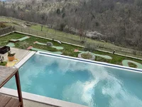 Важно отметить, что бассейн представляет собой пейзажный бассейн с подогревом. В доме имеется более 5 парковочных мест и собственный гараж.