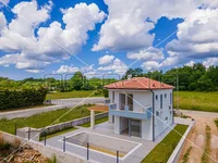 Istria, Svetvinčenat, a newly built house with a net area of 136 m2 is for sale in a small quiet settlement near the historic town of Svetvinčenat, one of the jewels of Istria with a rich tourist offer and numerous events.The house is currently in the phase of environmental completion and is being sold turnkey, without furniture. A carefully designed project with an emphasis on functionality and the selection of quality materials.On the ground floor there is a living room with a kitchen and a dining room and an exit to the terrace and a wonderful yard, toilets and a boiler room.On the first floor, which is reached by a stone-clad staircase, there are three spacious bedrooms, each with its own bathroom. Two rooms have their own balcony with a view of the greenery.Three air conditioners were installed in the house, and additional comfort was ensured by the floor heating system installed throughout the house.A chimney is also built in, so there is also the possibility of heating with wood.There are two solar panels on the roof to power the instantaneous water heater.In the landscaped and fenced yard there is a swimming pool of 36 m2 with a sunbathing area, a lawn and parking spaces.Great location for a quiet family life or as a property for tourist rental.