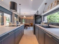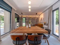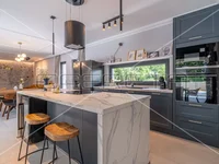 In the settlement of the municipality of Svetvinčenat, a one-story house with a modern L-plan design is for sale. The total area is 147m2 on a plot of 860m2.The house consists of a modernly equipped kitchen with pantry, dining room, living room, guest roomtoilet, wardrobe space in the hall, technical room, three bedrooms, one of which is a master bedroom with its own bathroom and wardrobe, while the other two rooms have a shared bathroom. Each room has an exit to the terrace and sun deck where there is a 9×3 swimming pool with salt water and electrolysis technology, as well as preparation for a heat pump andheatingHydromassage on the sitting part of the pool.The summer kitchen will be located on the covered part of the terrace.Underfloor heating is installed throughout the house, a Viessmann heat pump, while four Mitsubishi air conditioning units are installed for cooling.