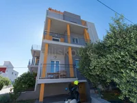 Больший дом на трех этажах, состоит из 3 жилых единиц: двухкомнатная квартира на первом этаже и трехкомнатная квартира на первом и втором этажах.