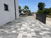Istria, Medulin, just a 5-minute drive to beautiful beaches, on a quiet, elevated part of one of the most popular tourist centers of Istria, this modern one-story house with a beautiful panoramic view of the bay is located.The net area of the villa is 225 m2, while the land on which it is located is 525 m2.On the ground floor there is a hallway, spacious living room and dining room with access to the terrace, kitchen, one bedroom with bathroom, storage room.On the second floor there are four bedrooms, each with its own bathroom.Two rooms have access to the terrace with a beautiful view of the sea.Auxiliary stairs from the corridor on the first floor lead to the roof terrace, from which there is a direct view of the Medulin Bay.In the basement there is a toilet, a storage room and a machine room-technical room.Inside the completely fenced yard, several parking spaces, patio door with automatic opening.The villa is unfinished – it is necessary to complete the floor coverings, paint the walls, finish the bathrooms (ceramics and sanitary ware).The pool area is 35 m2 and it also needs to be finished, only the 1st installation phase has been installed, the pool shell and sun deck have been concreted.Quality materials were chosen for construction.Pipes for floor heating with a system on the walls (heating/cooling) are installed throughout the house. In every room there is preparation for air conditioning.The villa is connected to the city sewer system.