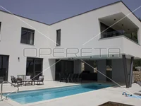 Построенный из материалов премиум-класса, дом имеет бетонную конструкцию и столярные изделия из ПВХ антрацитового цвета. Дизайн интерьера включает в себя высококачественный паркет из дуба Галековича, освещение Артемиды и мебель, изготовленную на заказ.