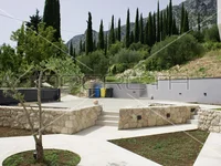 Дом расположен на просторном участке земли под застройку площадью 737 м², дополненном дополнительной оливковой рощей площадью 1075 м², предлагающей достаточно места для дополнительных функций, таких как теннисный или футбольный корт, сауна или тренажерный зал.