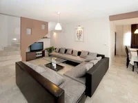 На первом этаже есть кухня со столовой и гостиной, а также одна спальня с ванной комнатой и отдельным туалетом. В гостиной есть большая балконная дверь с видом на бассейн и крытая терраса с зоной барбекю.