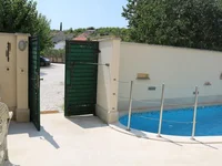 На первом этаже находится гостиная с кухней, две спальни с туалетами, выход на террасу с бассейном.