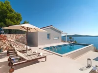 Удивительная вилла на холме с панорамным видом на море и бассейном всего в 75 метрах от моря в районе Рогозницы!