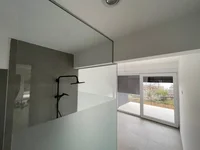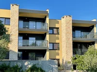 Год постройки 2022. Всего в здании 6 квартир. Кирпичное здание. Теплоизоляция высотой 10 см пенополистирола. Полы покрыты плиткой. ПВХ карпентер Саламандра с ставнями. На стеклянных стенах установлены электрические жалюзи. Система отопления и охлаждения с тепловыми насосами. Отопление и охлаждение оборудования расположены в гостиной и по одному в каждой спальне. Кроме того, электрическое отопление пола в ванных комнатах. Кроме того, были сделаны установки под солнечными панелями. На террасе есть барбекю. Входная дверь противовторжение и огнестойкость.