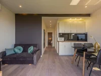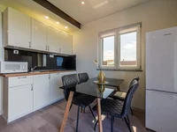 На первом этаже находится квартира с двумя спальнями, состоящая из прихожей, двух спален, ванной комнаты, кухни со столовой и гостиной. На первом этаже находится гараж, из которого можно прямо войти в квартиру на первом этаже. Общая площадь первого этажа составляет 92,94 м2. Внутренние лестницы ведут на первый этаж, где есть еще две квартиры, каждая с одной спальней. Общая площадь первого этажа составляет 95,92 м2. Внутренняя лестница ведет к террасе на крыше, где есть дополнительное помещение, которое можно использовать для хранения, фитнес-зал, сауна или тому подобное. Общая площадь террасы на крыше составляет 93,42 м2.