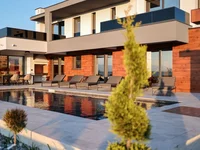 Напольное отопление с тепловыми насосами по всему дому. Кондиционер в каждой комнате, также с помощью тепловых насосов. На крыше расположены солнечные коллекторы, которые используются для подогрева воды и обогрева дома. Крыша дома плоская, покрыта 2-миллиметровой пленкой ТПО, которая гарантирована на 10 лет. Часть фасада первого этажа представляет собой вентилируемый фасад с алюминиевыми панелями деревянного цвета. У бассейна есть открытый душ. Бассейн нагревается. На стоянке находится зарядная станция электромобиля. Передняя дверь - Schuco, не только кража со взломом и огнестойкость, но и двери безопасности. Они открываются отпечатком пальца и клавиатурой. Дверная деревянная спальня.