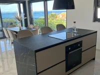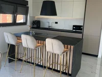 Строительство с бетонной стеной. Теплоизоляция высотой 10 см пенополистирола. Полы покрыты плиткой. Окна из ПВХ с трехслойным стеклом, ставнями и роликовыми жалюзи и противомоскитными сетками. В квартире 4 кондиционера. Один блок находится в гостиной, оставаясь в спальнях. Кроме того, электрический пол нагревается в ванных комнатах и комнатах. Кроме того, входная дверь огнестойкая и противовторжение. Кроме того, квартира оборудована системой мониторинга.