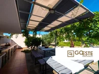 Сад богат садоводством, где заботятся о каждой детали. В нем есть бассейн площадью 40 м2, освещенный ночью собственным загаром, душем на открытом воздухе, местом для развлечений и развлечений для самых маленьких гостей, большой крытой парковкой и большой летней кухней с барбекю, что означает большое пространство для семейных встреч и еды.