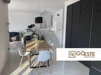Он расположен на двух этажах с общей жилой площадью 160 м2. На первом этаже есть прихожая, просторная гостиная, современная кухня и столовая, туалет, ванная комната, спальня и фермерская комната.