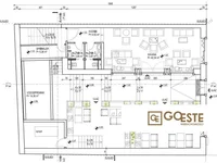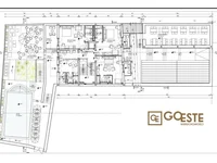 Первый этаж состоит из двух отдельных частей, соединенных общим входом. В первой части находится кафе с террасой и двумя туалетами. Во второй части есть ресторан со столовой, двумя туалетами, кухней, двумя кладовыми, комнатой с машинным отделением и оздоровительной зоной, оборудованной сауной, джакузи, горячей ванной и двумя ванными комнатами.