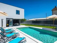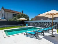 Современная вилла на продажу в тихом месте всего в нескольких минутах от красивых природных пляжей и центра города Пула в Шкатари, в 2500 м от моря.