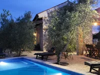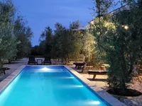Площадь около 3,5 га (35 000 м2) полностью отделена и приватна. Два дома, частный каменный дом как BBQ дом / барбекю с летней кухней, рядом с ним большой бассейн с террасой более 200 м2 предлагают феодалам роскошную атмосферу - прямо в оливковой роще.