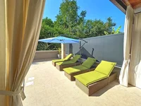 Общая площадь поверхности дома составляет 280 квадратных метров. На первом этаже есть гостиная, кухня с обеденной зоной, ванная комната и доступ к террасе. На первом этаже есть две спальни, каждая со своей ванной комнатой и выходом на балкон. Второй этаж предлагает две дополнительные спальни, также с частными ванными комнатами и выходами на просторную террасу. Интерьер исключительно хорошо поддерживается, роскошно меблируется и оснащен современной техникой последнего поколения, обеспечивая высокий уровень комфорта. Красивый ландшафтный сад с бассейном и солнечной палубой добавляет значительную ценность собственности, а вилла также включает в себя сауну и фитнес-зону.