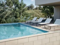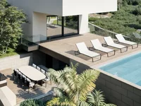 Второй этаж состоит из четырех просторных спален, каждая из которых имеет собственную ванную комнату, а также дополнительное пространство для хранения. На третьем этаже находится дополнительная спальня с гардеробной, частной ванной комнатой и доступом к большой крытой террасе с захватывающими панорамными видами на Адриатику и окружающие горы.