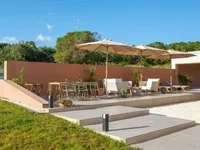 На первом этаже находится уютный спа-центр с полностью оборудованным современным тренажерным залом и крытым подогреваемым бассейном. Благодаря раздвижным стеклянным стенам, зона бассейна может быть преобразована в полузакрытое пространство, напрямую соединенное с открытой террасой, создавая плавный переход между внутренним комфортом и окружающим средиземноморским ландшафтом. Это делает виллу идеальной для отдыха, велнеса, жизни на свежем воздухе и проведения встреч с друзьями.